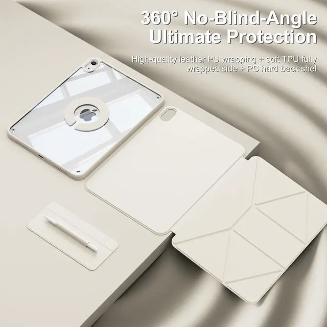 KTGGHG Case for iPad Air 11-Inch M4/M3/M2 (2026/2025/2024), iPad Air 5th/4th Generation(2022/2020) 10.9" with Pencil Holder, Detachable Magnetic 360 Rotating Lightweight Protective Cover, White Cream
