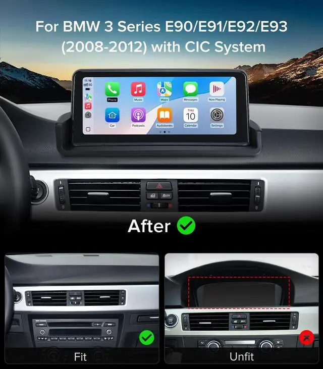Please NoteOur 10.25 Inch car stereo only suit for your original car without display screen. If your original car supports the screen display, then even in the applicable years table, then it is not suitable for your car. Before installing our car navigation display, we need to cut a notch in the center console of the original car to install our product, if you mind, please do not choose it. ^^ Compatible Car Models YearsIt is compatible with BMW 3 Series E90/E91/E92/E93 2008, 2009, 2010, 2011, 2012 with CIC System, and your original car without display screen.