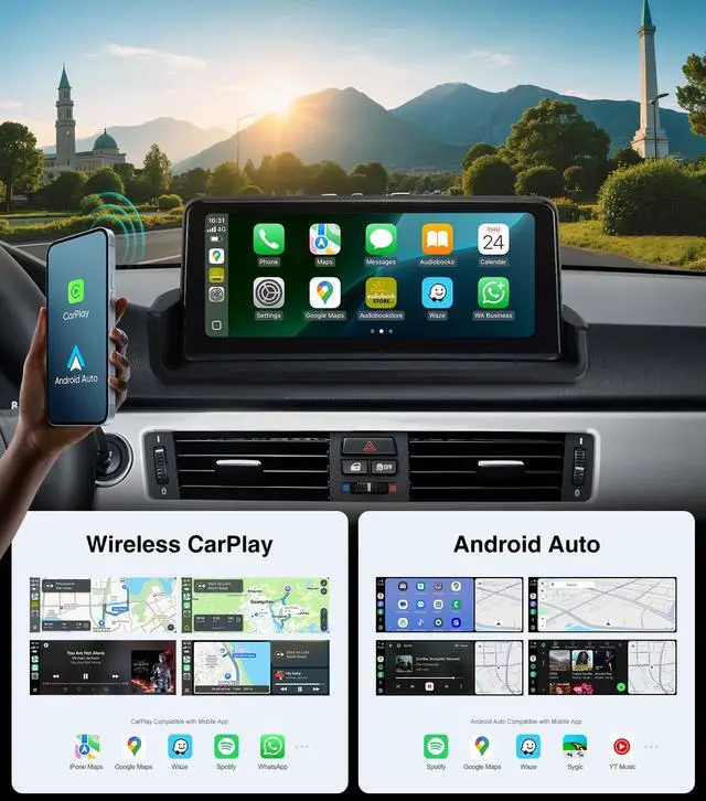 ^^ Seamless ConnectivityEffortlessly connect via Wireless/Wired CarPlay, Android Auto, AirPlay, or MirrorLink. Stream navigation, music, and calls directly to the 10.25" HD screen while retaining OEM iDrive knob, Bluetooth, and steering wheel controls ^^ Display Experience crisp 1920x720 resolution on a 10.25" touchscreen. Watch 1080P videos and enjoy clearer reversing images with the OEM rearview camera or an optional 720P AHD camera, offering superior clarity compared to standard CVBS cameras ^^ Dual OS + iDrive Control Retain original BMW radio functions while adding advanced features with Linux system support.