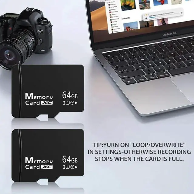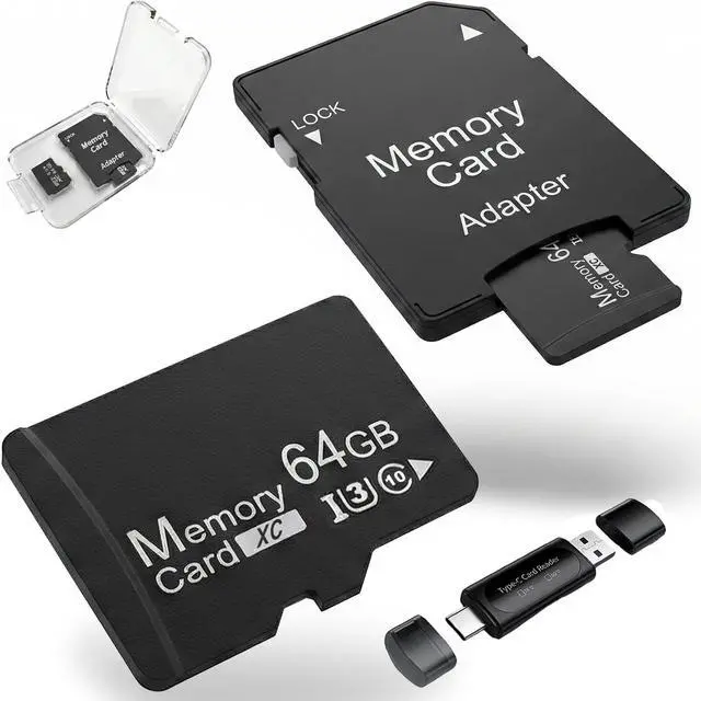 **Important: To prevent loss, 1 card is pre-inserted into the SD adapter, while the 2nd card is placed separately in the protective case. ^^ Wide Compatibility Compatible with devices that support MicroSDXC, including security cameras, dash cams, tablets, smartphones, action cameras, and more. ^^ Product Description This 2-Pack 64GB MicroSDXC Memory Card Set offers reliable performance for everyday recording and data storage needs. With V30 U3 rating, it is suitable for 4K UHD video recording and stable continuous writing, making it a dependable choice for security and driving record applications. Built with multi-layer protection, these cards are waterproof, shockproof, magnet-proof, X-ray proof, and temperature resistant, helping safeguard your important files in various environments. Whether for home security, vehicle monitoring, or tablet expansion, this storage solution delivers dependable performance and convenience.