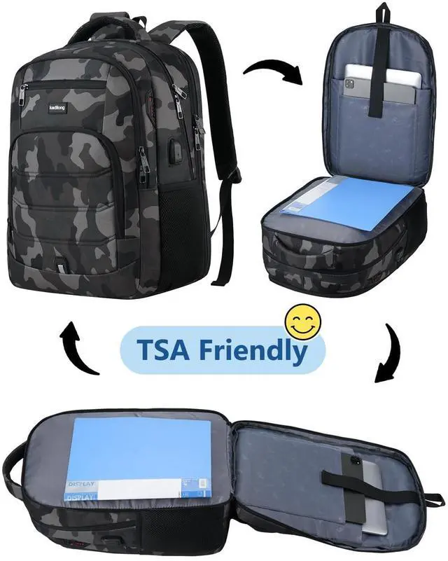 ^^ EASY FOR TRAVEL: At checkpoints, the large travel backpack can be freely unfolded 90-180 degrees, allowing you to quickly pass through airport security and keep things tidy, exclusively designed for airplane travel. A luggage strap allows backpack fit on luggage/suitcase, great for international plane travel and day trips. With a hidden anti theft pocket on the back protect your valuable items from thieves making your journey and travelling more safe.