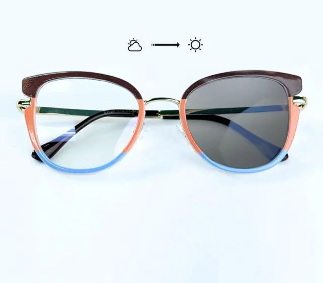 DescriptionBlue Light Blocking & Photochromic Technology: Filters up to 90% of harmful blue light from digital screenscomputers, phones, tablets, and TVshelping reduce digital eye fatigue and visual stress during long screen sessions. Photochromic lenses automatically darken outdoors under sunlight and return to clear indoors.