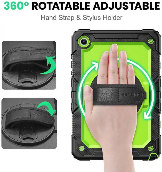 Stand and Handle: The case comes with a stable stand and 360 degree rotating handle, making it easy to use tablet, for anything from video calls to watching movies; provide full protection for your tablet screen with a built-in screen protector. ^^ Convenient and