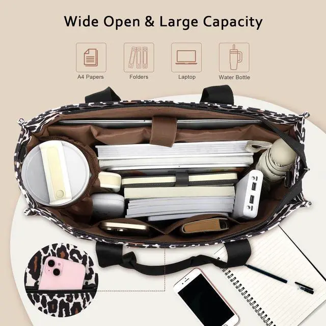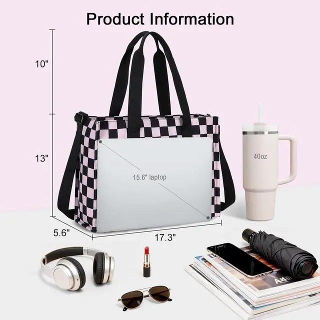 size: 16.5" L 5.5" W 12.5" H, ideal for daily use. This laptop bag for women comes with adjustable shoulder straps and top handles, suitable for people of different heights. Structured design keeps the bag standing upright on its own even when empty, maintaining a sleek, structured look effortlessly! ^^ Elastic Pocket for Large Water Bottles This large-capacity womens work tote bag features multiple compartments for neat and organized storage. The elastic water bottle pocket can securely hold large water bottles to prevent spills. The back zipper pocket safely stores your phone, cards and other small personal items. Suitable for professionals, teachers, nurses and more, efficiently meeting the storage needs of a busy daily life. ^^ Fashionable Tote for Multiple Occasions With a simple and elegant design and multiple color options, it easily matches various outfits, suitable for office, campus, travel, dates and other occasions. Balancing style and practicality, its also a wonderful gifts for birthdays, graduations, Mothers Day, Valentines Day, Christmas and other important festivals.