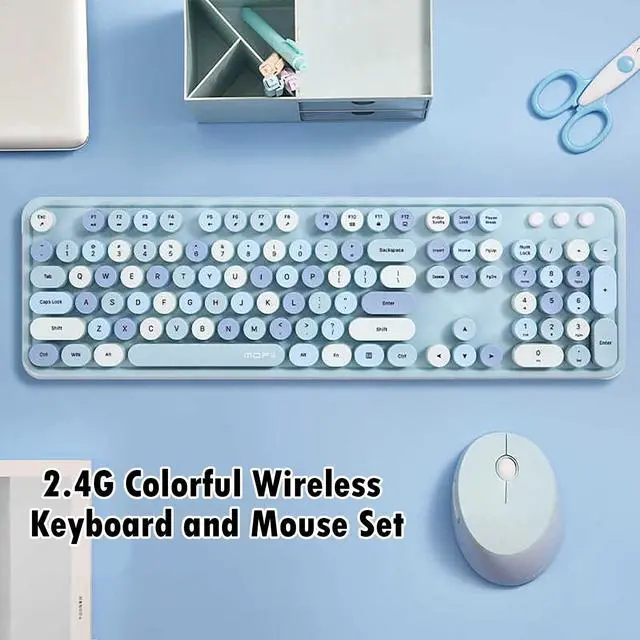 2.4G Full-Size Wireless Keyboard and Mouse Combo, Multi-Color Typewriter Style Round Keycap, Cute Candy Colors, Compatible with Notebook, PC