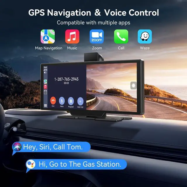 Stereo & Lossless Audio: Our car screen carplay with upgraded Bluetooth 5.0 ensures stable wireless audio streaming to car speakers, This wireless car play screen is delivering immersive sound via CarPlay/Android Auto. Compatible with FM transmission and AUX output for versatile connectivity. ^^ Real-Time GPS Navigation & Voice Control: By connecting your smartphone to portable carplay screen, it will provide precise real-time location and GPS navigation without delay. Use Google Maps to provide real-time route recommendations for traffic congestion and lane changes. The wireless carplay screen support voice commands via Siri/Google Assistant (CarPlay/Android Auto mode only) enable hands-free operation.