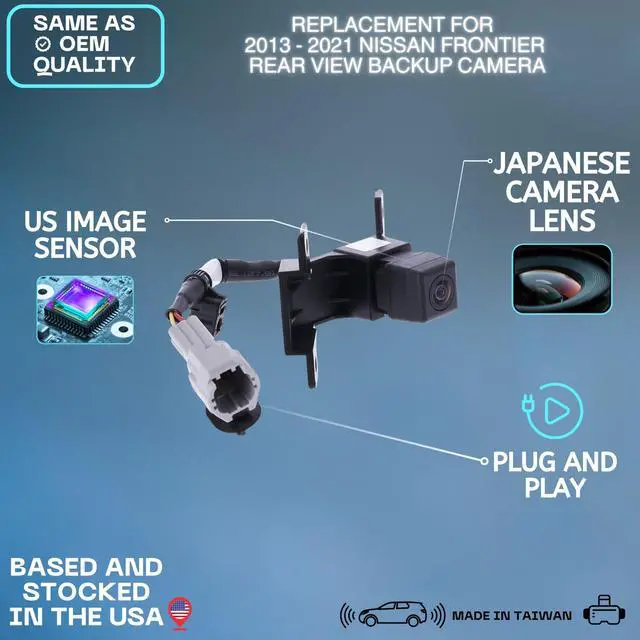 {Plug and Play} This device can be easily plugged into the existing OEM video harness. ^^ {Replaces} Backup Camera Compatible with 2013 2014 2015 2016 2017 2018 2019 2020 2021 Nissan Frontier ^^ {OEM#} 28442-9BF3A 28442-9BF0A 28442-9BF2A (284429BF3A, 284429BF2A, 284429BF0A) ^^ {Specs} *Angle: 170 Degrees *Waterproof Level: IP68 *Resolution: 600 TV lines *Pixel: 728 x 582 *Signal: NTSC/PAL * Illumination: 0.1 Lux light (minimum) *Power: DC 12V ^^ {Important note} We recommend contacting your local dealer to confirm that the part number you are purchasing is an exact match for the part number you require, prior to making your purchase.