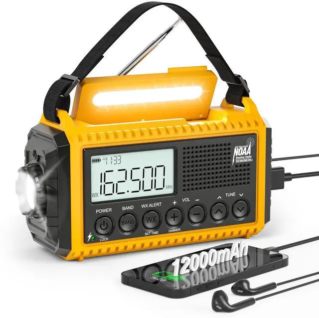 No Need to Keep the Radio Always On & Save PowerThis CR1009Ultra noaa weather radio is upgraded from the CR1009 Version, After you press WX alert and preset a timer, it can auto scan 7 NOAA Weather Stations to receive local hazard weather and warn you by an extra loud siren and red alert light even if you turned off the radio. You will never miss the alert even at sleeping night. It can also get quick access to your favorite am fm shortwave band with auto scan function. ^^ 6-way Powered 12000mAh Emergency RadioThe solar crank radio is ready to save your life in emergency.