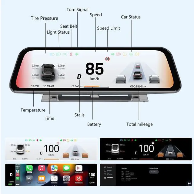 ^^ 12 Shortcuts: One-tap control for doors, seats, trunk; supports Android Auto/CarPlay. Stream and navigate wirelessly with split-screen functionality. Supports AMD/Intel Ryzen CPUs + Tesla V12+ software.
