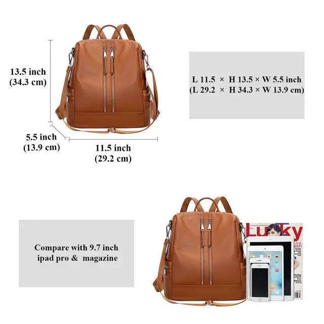 Recycled Fabrics Materials: This backpack is made of reliable and wear-resistant full-grain cowhide (soft genuine leather). ^^ DimensionsL 11.5 x H 13.5 X W 5.5 inch( L 29.21 x H 34.29 x W 13.97 cm).