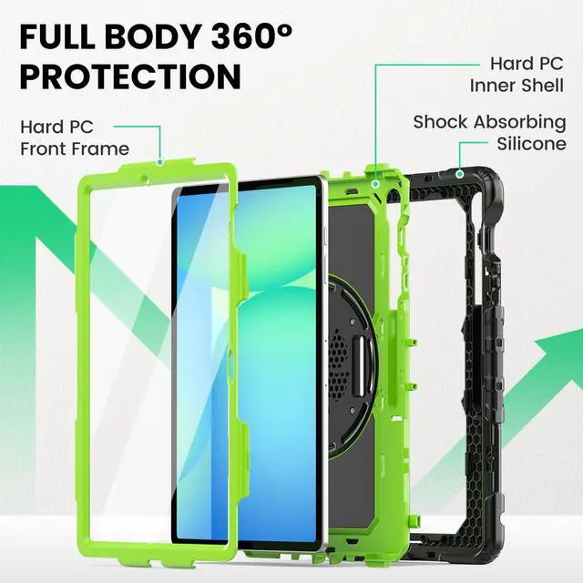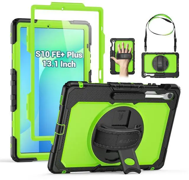 ^^ Full Protection: 3-layer front-and-back protective case protects your Galaxy Tab S10 FE+ 13.1 '' tablet against drops, scratches, and scuffs; hard internal shell, soft silicone exterior and built-in screen protector deflect everyday action and accidents. ^^ Rotating Stand and