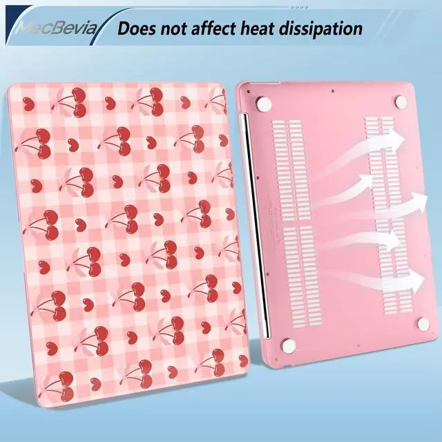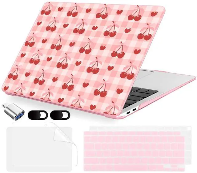 MecBevia Compatible with MacBook Air 13.3 inch Case 2021-2018 Release A2337 M1 A2179 A1932 Touch ID, Plastic Hard Shell&Keyboard Cover&Screen Protector&Webcam Cover&Type-C Adapter, Pink Cherry Check
