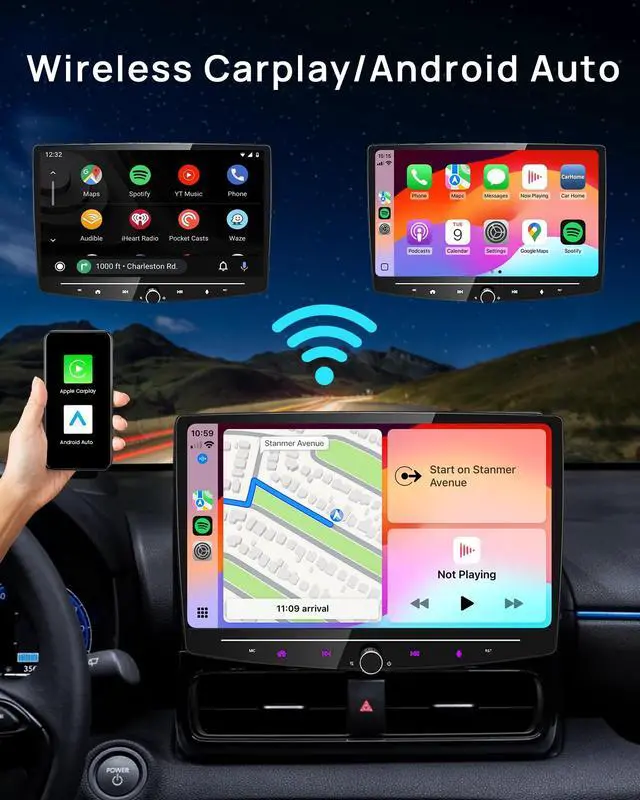 Wireless Apple CarPlay & Android Auto Compatibility Enjoy seamless smartphone integration with wireless Apple CarPlay and Android Auto, enabling hands-free calls, music, and navigation without the need for cables, for a safer and more convenient driving experience ^^ Crystal-Clear QLED Touchscreen Display Featuring a high-resolution, detachable QLED touchscreen, this single din radio delivers vibrant visuals and smooth touch response for an immersive entertainment and navigation experience ^^ Entertainment on the Go with Multimedia Support Watch YouTube, stream Netflix, browse TikTok, and enjoy Spotify and other audio formats on the single din touchscreen radio, turning your car into a mobile entertainment hub.