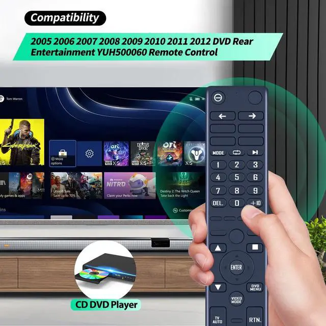 Compatibility New replacement remote control compatible with 2005 2006 2007 2008 2009 2010 2011 2012 Range Rover Land Rover DVD Rear Entertainment YUH500060 ^^ NO ProgrammingJust add the batteries and it worked immediately. Batteries are not included 2* 1.5V AAA Batteries) ^^ Remote DistanceInfrared technology emits a strong signal at 180 degrees and within 12 meters (40 feet); ^^ ABS materialThis smart remote made of high quality ABS material to make this smart remote more durable. This replacement remote only comes with 0.10 kg ( 0.22 lb. ), wear-resistant and durable. ^^ Lifetime Warranty & Exceptional ServiceDoesn't match your equipment? Quality problem? Don't worry!! We offer 6-MONTH warranty, free exchange or refund))