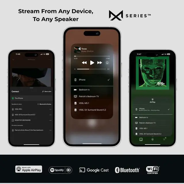 Smart Home Integration Ready Fully compatible with Control4, Crestron, Elan, RTI, URC, Savant, and more. Ideal for installers needing a reliable, modular audio solution that works flawlessly in high-end smart homes. ^^ Stream from All Major Platforms Easily connect Apple Music, Spotify, YouTube Music, and more using AirPlay 2, Chromecast, or Spotify Connect. Stream directly from your favorite devices with voice control via Siri or Google Assistant. ^^ Versatile Audio Input & Output Options Equipped with HDMI eARC, Optical (ToS link), USB, Analog RCA, Bluetooth LE Audio, and Wi-Fi, the MS.