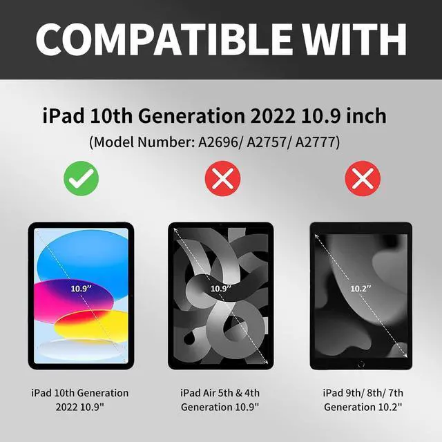 Perfect Compatibility-Exclusively designed for iPad 10th Generation 10.9 Inch 2022. It will NOT work for any other model device. ^^ 360 Degree Rotating & Adjustable Angle- Built-in 360 degree rotating swivel stand, support landscape and portrait viewing, adjustable angle for video watching, chatting and easy typing with this tablet case for iPad 10th Generation Case.