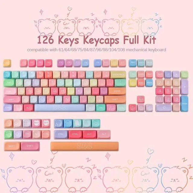 ^^ Widely Compatibility: The Rainbow Keycap Set contains 126 keys for most 60%/65%/75%/80%/96%/100% (61/64/68/75/84/87/96/980/104/108) American Layout mechanical keyboards ^^ Keycaps TipIf you have any questions about the product you can contact us at any time, we will solve the problem for you (Note: only keycaps, not keyboard)