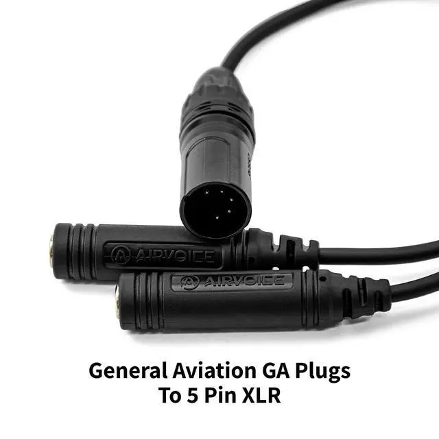 General Aviation GA Plugs to XLR Headset Adapter, GA Twin-Plug PJ-068 PJ-055 to 5 Pin XLR Plug Adapter