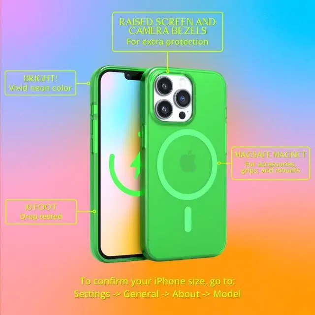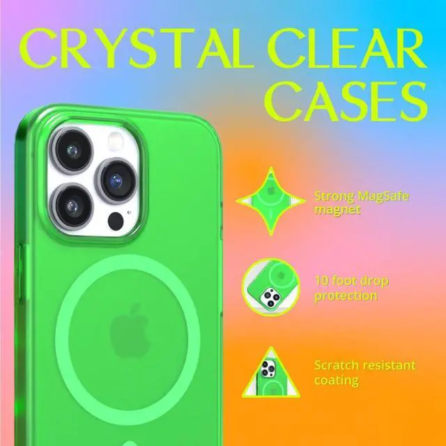 COMPATIBLE WITH MAGSAFE - Our all new iPhone 14 Pro case enables you to enjoy faster wireless charging experience with added protection and sense of style. It features a built-in powerful magnetic ring that offers a stronger hold on MagSafe wireless charger and other Magsafe accessories. ^^ SLIM AND STYLISH - Expertly designed neon clear case for iPhone 14 Pro ensures a perfect fit for your brand new iPhone. This premium protective case comes in a range of vibrant and super bright stylish neon colours. Felony Case offers a wide range of iPhone cases to match every mood and style.
