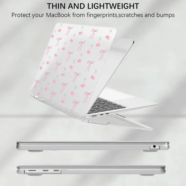 FOR MACBOOK PRO 13 INCHONLY compatible with MacBook Pro 13 inch (model number: A1706 / A1708 / A1989 / A2159 / A2338 / A2251 / A2289). Please check the model number "AXXXX" on the back of the laptop before purchasing. ^^ FROSTED MATERIALHard Shell Case with frosted-finish will protect your laptop from fingerprints, slipping and daily scratches. Designed for Macbook case with bow ribbon and cherry pattern feature vivid colors makes it more stylish and unique. ^^ EASY TO INSTALL AND REMOVESnap-on design makes the protective case easy to put on or take off. Precise cutouts allow cables, chargers and headphones to be pushed in completely. ^^ SAFE HEAT DISSIPATIONVentilation holes on the bottom ensure for your MacBook has good heat dissipation. Weights of 0.66 lb and thicknesses of 0.59 inches, slim matte case almost add little weight to your laptop. ^^ RELIABLE SERVICE GUARANTEE] Outstanding customer service allows you to be worry-free after purchasing. We will do our best to solve your problem as soon as possible until you are satisfied.
