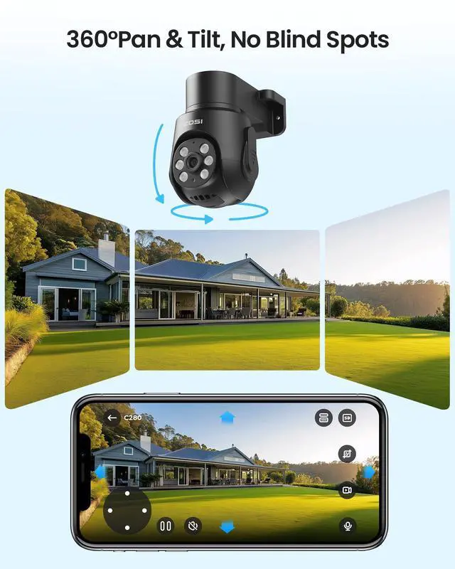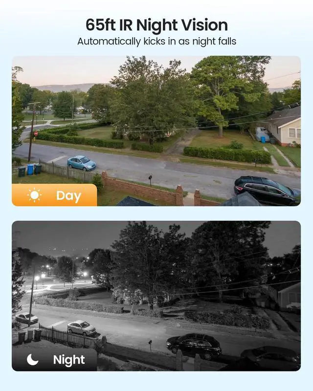 One camera easily covers wide areas such as yards, driveways, shops, or hallways, reducing the need for multiple units.