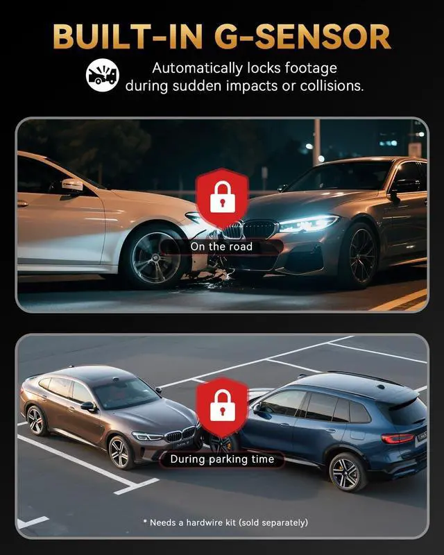 Please note: A separate hardwire kit is required for parking mode ^^ Easy Installation & 18-Month