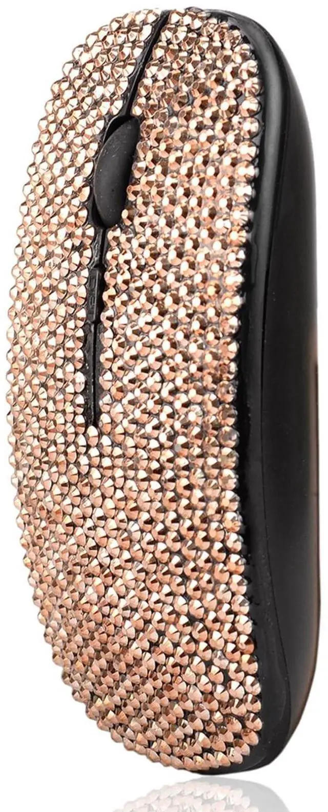 blingbybri Luxury Bling Rechargeable Wireless Mouse with Austrian Crystal Rhinestone,Flat Slim Mouse for Laptop PC Girl's Gift - Rose Gold