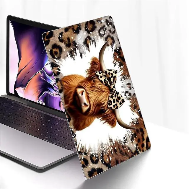 Yicomon Compatible with MacBook Air 15 Inch Case 2023 M2 2025 M4 Chip Model A2941 A3241, Plastic Hard Shell Case for Mac Air 15 with Touch ID (2023) - Highland Cattle Leopard