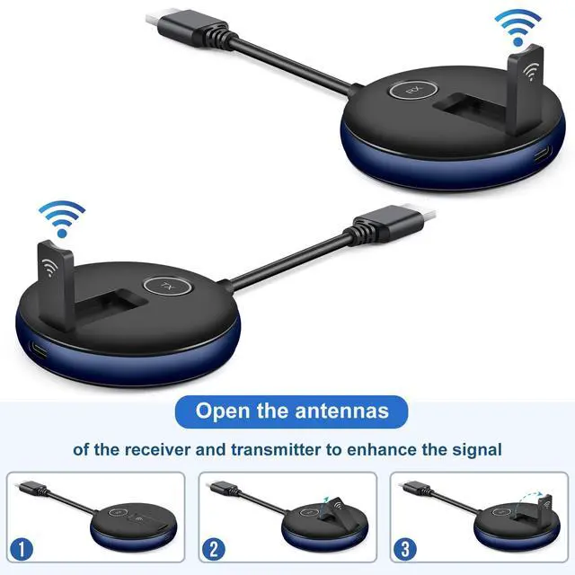 Plug and PlayOriginal Pre-Paired HDMI Transmitter and Receiver Sets ensure easy setup. No app downloads, No drivers, No software. Simply Plug Both TX and RX into the HDMI Port and USB 5V1A Power Source, and they will Auto-Pair without any additional configuration. ^^ 5.8G / 2.4G Unfold AntennasYomais G9R Wireless HDMI Transmitter Operate and Function on the 2.4G /5GHz Dual-Band. No Wi-Fi or No Bluetooth connections are required. Open Antennas for stronger and stable signals-- Only 0.1 s Latency. Experience seamless connectivity and elevate your multimedia experience with the G9R.