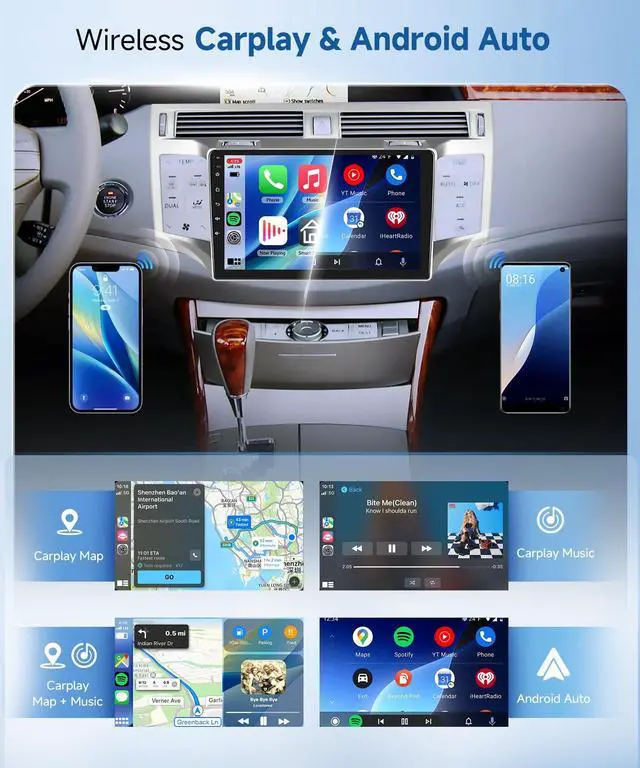 for Toyota Avalon Radio & Qualcomm ChipThis car radio is compatible for Toyota Avalon 2005 2006 2007 2008 2009 2010 Radio and features a plug - and - play wiring harness. Equipped with Qualcomm's 8-core processor and Android 15 OS, this car stereo delivers superior processing power with 4GB RAM + 64GB ROM for zero-lag operation. ^^ Wireless Carplay & Android Auto for Avalon Radio support seamless wireless CarPlay & Android Auto connectivity supports latest iOS/Android versions. Directly access navigation apps (Waze, Google Maps), streaming platforms (Spotify, YouTube Music), and communication tools via the responsive 9-inch display.