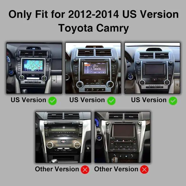 Applicable Car ModelsAndroid 14 Double Din Car Stereo Radio for Toyota Camry 2012-2014 with Wireless Carplay Android Auto 2+64G. ^^ Backup Camera CompatibilityAndroid Car Radio for Toyota Camry 2012-2014 supports a rearview camera for safer parking and reversing, displaying clear images on the screen. This Car radio Head Unit only supports OEM CVBS 720P backup cameras. 360 degree panoramic cameras are not supported. If your OEM backup camera is not compatible, please use the included backup camera. If this camera still does not work, please contact us. ^^ Built-in WIFI&GPS navigationAndroid Car Radio for Toyota Camry 2012-2014 connect to WIFI, you will find a new world, the most convenient is the online map.