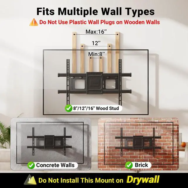 Quick Installation & Versatile Fit: Includes all mounting hardware, a clear user manual, and video guide for easy setup; fits 16" wood studs, concrete, and brick walls (not drywall alone); designed for long-term, low-maintenance use.