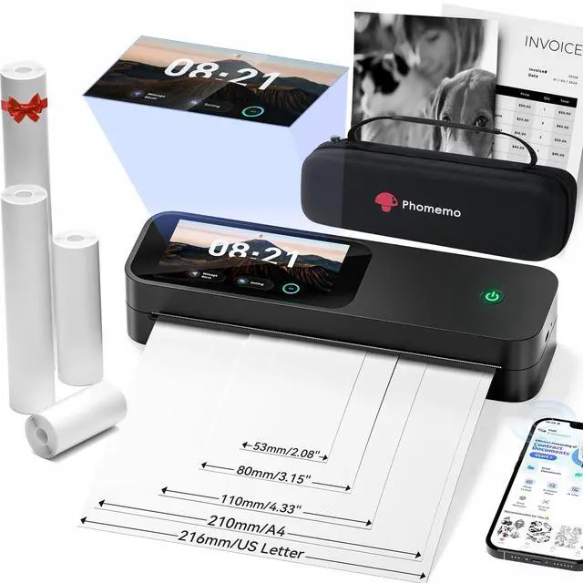 It's fully compatible with Word, Excel, PDF, JPG, and other major file formats for seamless printing anywhere ^^ [Supports 5 Thermal Paper Sizes] Phomemo M85 Thermal Printer is compatible with four paper sizes: US Letter, A4, B5, and A5. It works with thermal roll, folded, and single-sheet paper, perfectly meeting diverse printing needs for travel, home, or office use ^^ [Inkless & High-Definition Printing] Phomemo M85 Inkless Printer utilizes advanced thermal technology, making it a clean and economical Inkless Printer. Requiring no ink, toner, or ribbons, this Thermal Printer is equipped with a 300 DPI high-definition printhead that delivers crisp, professional-quality documents for business, home, or study ^^ [What's in The Box] M85 Portable Printer*1, Portable Carry Bag*1, Rolls of Thermal Printer Paper*4 (US Letter + 4.33" + 3.14" + 2.08" ), USB-C Cable*1, User Manual*1