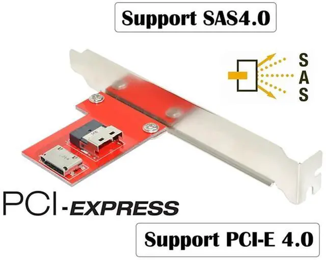 PCI-Express 4.0 Slimline SAS SFF-8654 to Oculink SFF-8611 SFF-8612 PCBA Female Adapter With Bracket ^^ The Adapter with Full and Low Profile PCI Slot Profile Mounting Bracket ^^ The Adapter External will work both on the host and device side. it is reversible design. ^^ The adapter support SAS to SAS or PCI-E to PCI-E singal. ^^ Supports up to 12Gb/s Mini SAS or PCI-E 4.0 Data Transfer Rate.