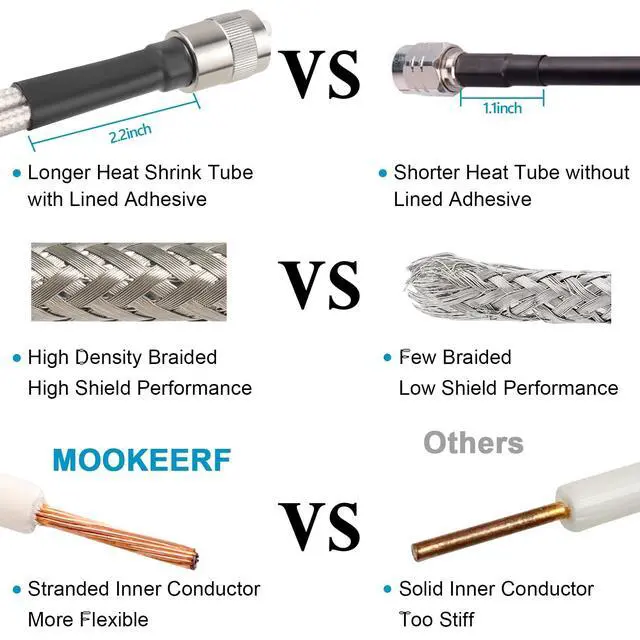• Strong Link PL-259 Connectors -- High quality pl-259 connectors combined with good welding make the connector not easy to break off from the cable.The length of heat shrink