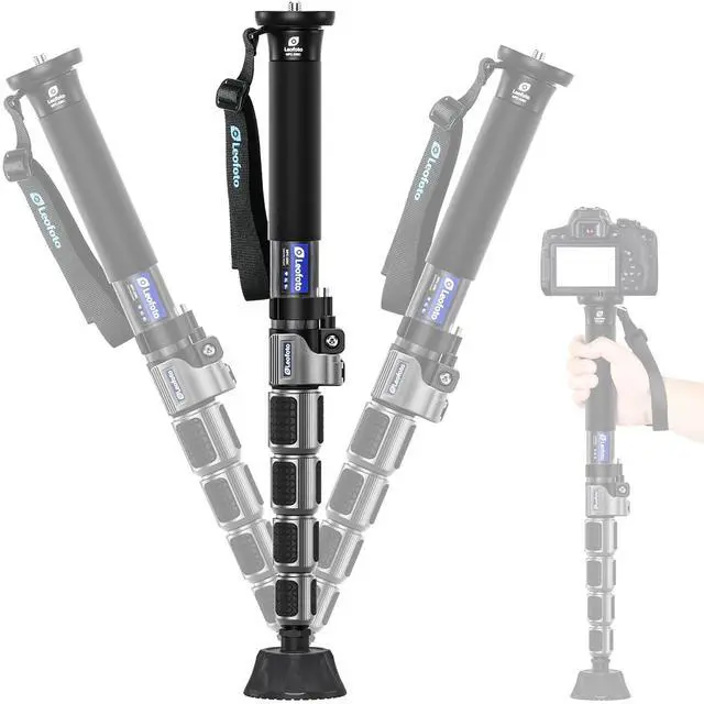 Combination of knob and big flip lock: Increase the trigger to extend the leg tube quickly and with less effort, and if you need more length, just twist the knob to extend to the maximum length in one secondQuick lifting and lowering: Simply pull or press the fip lock lightly toquickly adjust the monopod to the preset height, improving work eficiency to enable photographers to focus more on capturing fleeting andbeautiful momentsBig monopod replacement foot: Matched to leofoto's SC-50 Bigfoot. 70mm wide base, more stable than regular silicone mushroom shaped footWaterproof locking system: LEOFOTO-maded "maintenance-free system", which saves a lot of cleaning and maintenance time for photogra. phers and improves their recording efficiency. At the same time, it can effectively avoid missing the best shooting time when the tripodcannot be used normally due to the intrusion of sand and waterThoughtful design: 10-layer carbon fiber covered in silicone handle. Convertible mounting stud in top. Double-ended wrenches for hexagonal and hexagonal sockets and can be snapped onto the tube. Replaceable silicone feet. Lightweight, sturdy, more stable and easy to adjust