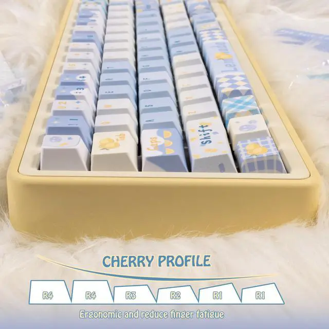 Cherry Profile: This set of blue beige keycaps adopts the most popular cherry profile design, which is ergonomic, more efficient and comfortable to press, and the right layout allows your fingers to reach every key easily ^^