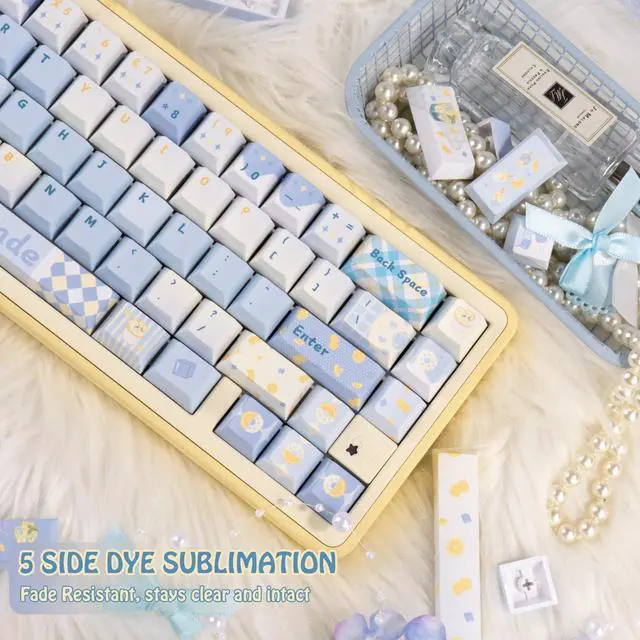 Refreshing Colour Scheme: This set of blue keycaps with a sea salt lemon theme will greatly improve the appearance of your mechanical keyboard. For those who like to change the style of keycaps, this set of customised keycaps will be the best choice ^^