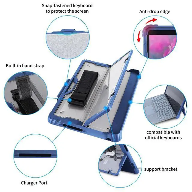 Official Keyboards: the keyboard opening design of the protective cover allows quick access to the keyboard, and there are firmly fixed buckles when the keyboard is closed to protect the screen. ^^ The surface pen slot design does not hurt the pen, easy to carry and avoid loss. If you have any questions during use, please contact us via mail, and we will provide you with solutions until you are satisfied. Our goal is to provide the best customer service.