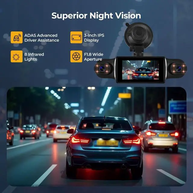 [Night Vision] Equipped with multiple infrared light sources, this dash camera excels at night vision, providing clear recordings in low light conditions. whether you're driving at dusk or through dark tunnels, this camera ensures superior visual performance for safety. ^^ [Easy Installation and Use] With a simple car cigar lighter power supply, this dash camera is easy to install and operate. the loop recording function and motion detection ensure seamless and efficient recording for your driving needs. ^^ [Real-time Sharing] Built-in wifi enables you to share driving videos in real-time with friends or send information to rescue personnel during emergencies.