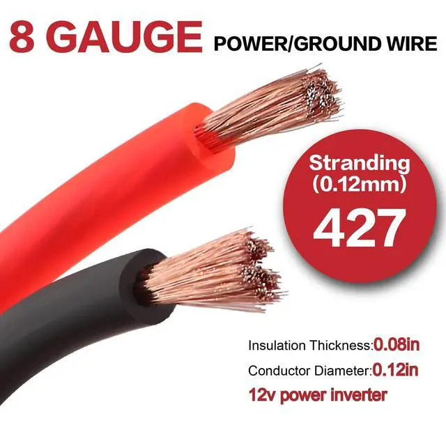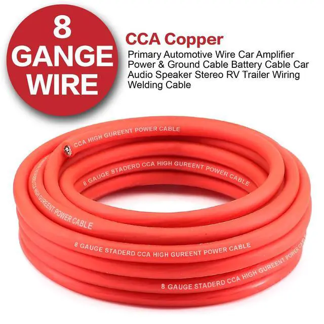 8 GAUGE 25-FEET( 7.62 m) OF EACH COLOR BLACK & RED CCA POWER GROUND WIRE - The lower the gauge number, the thicker the wire. Thicker wire presents less resistance to current flow. Copper coated aluminum gives you an economic power cable with excellent power transfer. ^^ HIGH QUALITY MATERIALS - High quality stranded CCA wire offers strong power transfer performance, while remaining lightweight with maximum flexibility. Oxygen Free Coppe (OFC) wiring provides a superior electrical conductor to aluminum because it does not expand or contract with heat and can carry a higher current load.