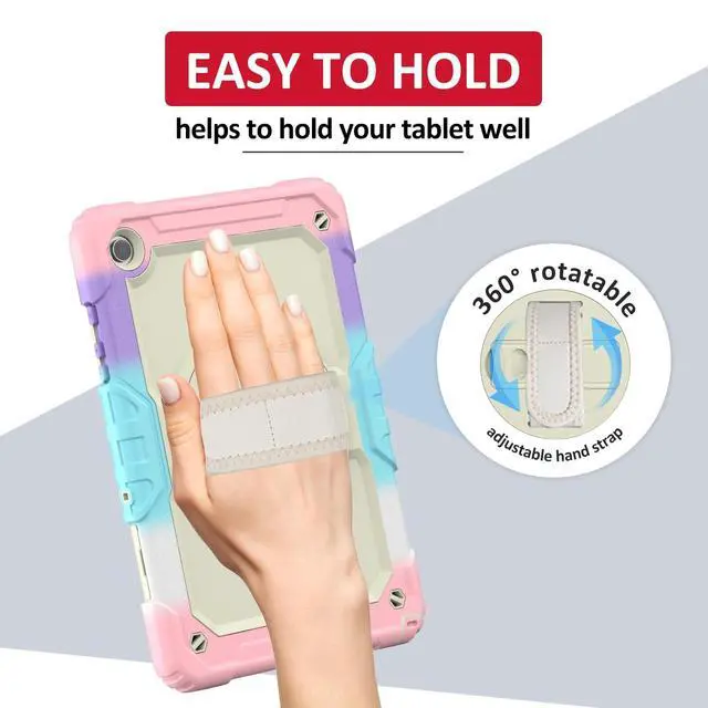 Layer Durable Protection: Flexible outer silicone with hard PC inner shell and top PC frame provide the max protection for your tablet. The outer silicone can absorb the impact from accident drop or shock. Totally kid proof for your A9+ ^^ Hand Strap & Shoulder Strap & Rotatable Kickstand: The adjustable hand strap helps you hold your tablet easily. And you could carry it convenience with shoulder strap. With rotating kickstand, you can get the watching angle or typing angle as you want ^^ This case provides full access to all buttons, controls, and ports without needing to be removed, compatible with the samsung galaxy tab A9 plus. Its shock-absorbing design helps protect against impacts, while the built-in port covers effectively block dust from entering the device