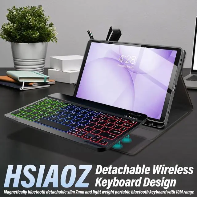 Compatible ModelsDesigned ONLY for Samsung Galaxy Tab A11 Plus/A11+ 11" SM-X310 SM-X315 SM-X236 2025; Samsung Galaxy Tab A9 Plus/A9+ 11" SM-X210 SM-X216 SM-X218 2023.; Allows easy access to all buttons, controls and ports without removing the case. ^^ Multiple Angles & RemovableInnovative magnetically detachable wireless keyboard design allows you take it off from your tablet case, to easily adjust the angle of the tablet to your preference. Removable wireless keyboard with case that transforms your surface prointo a laptop or your favorite book in less than a second. ^^ Rainbow BacklightRainbow backlight and breathing light mode switch, allowing you to type easily in the dark environment.