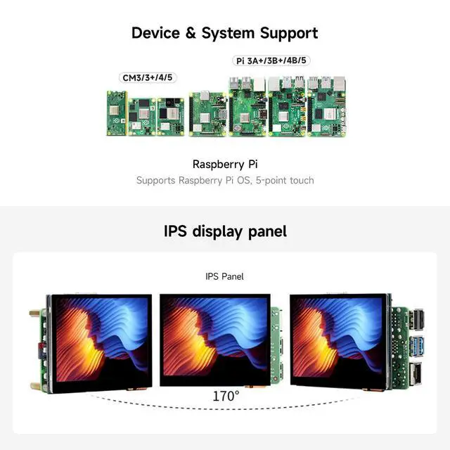 ^^ Multi-Touch Capability: Supports responsive 5-point capacitive touch for intuitive gestures like pinch-to-zoom and multi-finger control, compatible with Raspberry Pi OS. ^^ Compatible with