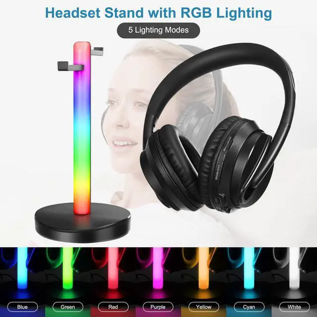^^ RGB-Lit Headphone Stand: Style & Function in One-The included Zanchie over-ear headphone stand boasts 5 vibrant RGB lighting modes, including dynamic multi-color flowing and soft single-color breathing effectsadding a sleek, modern touch to your entertainment setup. It also features 2 USB ports for convenient charging (use them for your headphones, smartphone, or other small devices) and can hold up to 2 headsets at once. More than just a stand, its a stylish storage solution that saves desk space. ^^ 1 Transmitter, Multiple