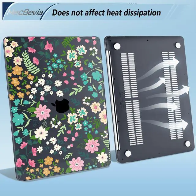 MecBevia Compatible with MacBook Air 13.3 inch Case 2021-2018 Release A2337 M1 A2179 A1932 Touch ID, Plastic Hard Shell&Keyboard Cover&Screen Protector&Webcam Cover&Type-C Adapter, Floral Print