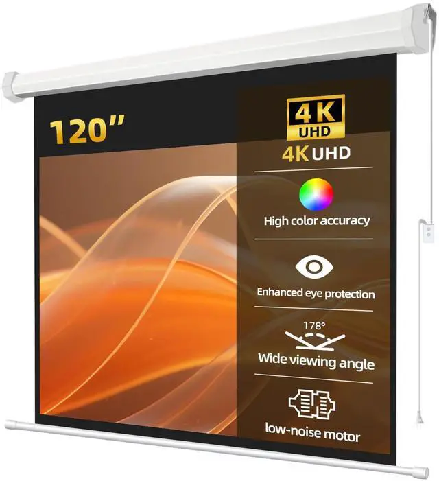 • Motorized Convenience: Effortlessly lower and raise your screen with the included remote control. Enjoy quiet, smooth motorized operation for a seamless home theater or presentation experience.