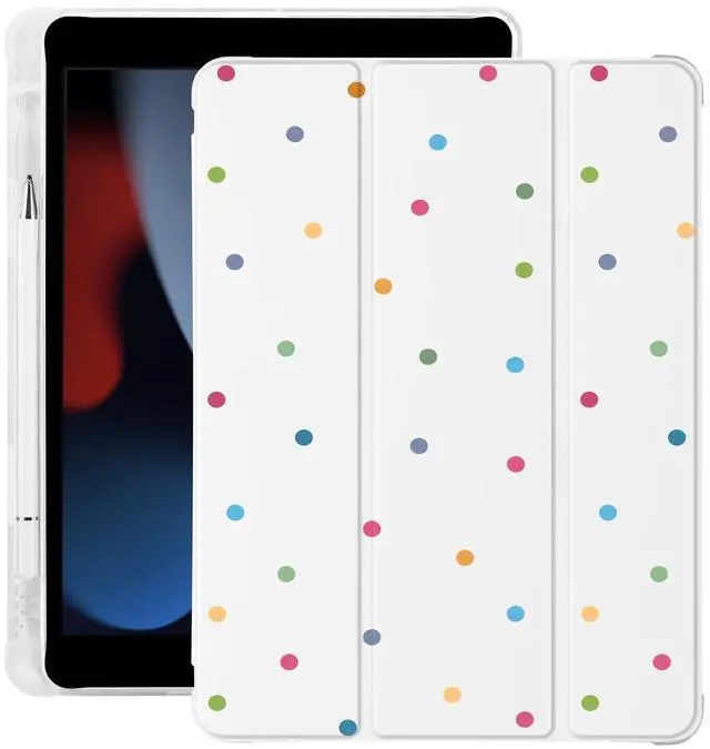BlHMCASE Cute Kawaii Polka Dot for iPad (A16) 11th Generation Case 11 Inch 2025, for iPad 10th Generation Case 10.9 Inch 2022 with Pencil Holder, Auto Sleep/Wake, White Leather Soft TPU Back Cover