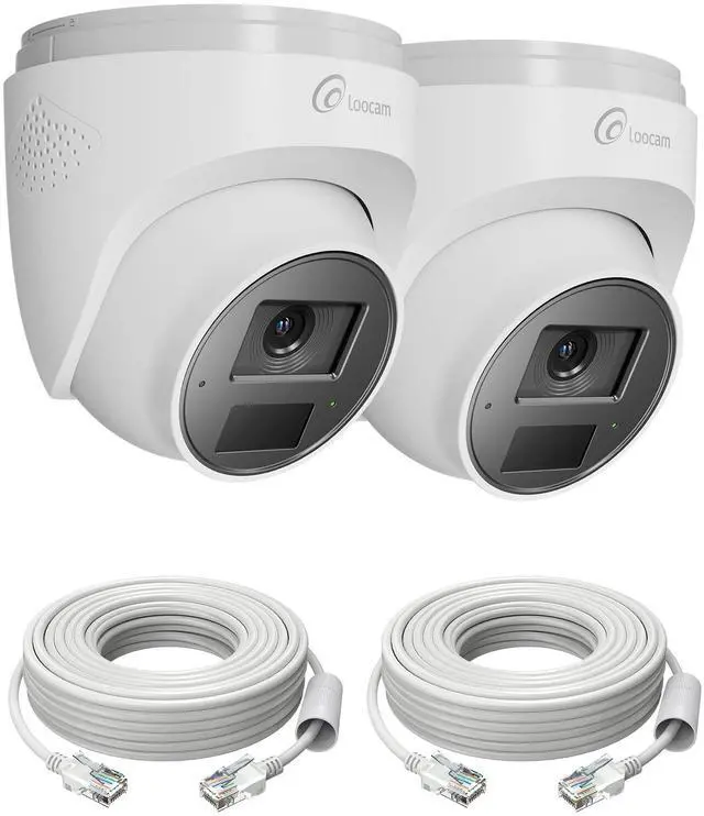 Note - Loocam cameras for home security doesn't require an SD card for data storage, it compatible with Loocam NVR security system or Loocam POE security camera system. Once connected to the NVR, video will display normally and be stored on the NVR's hard drive. (We do not recommend mixing with NVRs from other brands. ) ^^ 4K Ultra High Definition & IR Night Vision - The resolution of this dome PoE camera is clearer than 5MP HD security camera. Record everything with sharper details. Equipped with 2pcs IR LEDs to enhance night vision, support 100ft night vision.