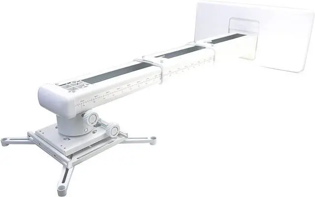 The mounting plate of the projector bracket has four adjustable and freely retractable horizontal axis mounting arms, which is a universal mounting bracket for ultra short distance projectors. The maximum distance between mounting holes on the back of the projector must be less than 12.5 inches.